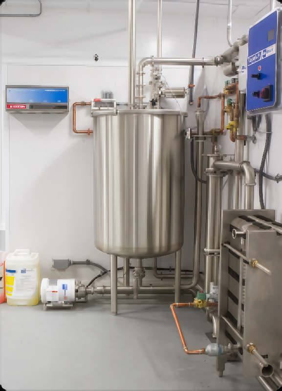 Описание процесса BouMatic Milk/Wash Vat: Молоко с доильного зала подается в промежуточную вертикальную нержавеющую емкость с крышкой.